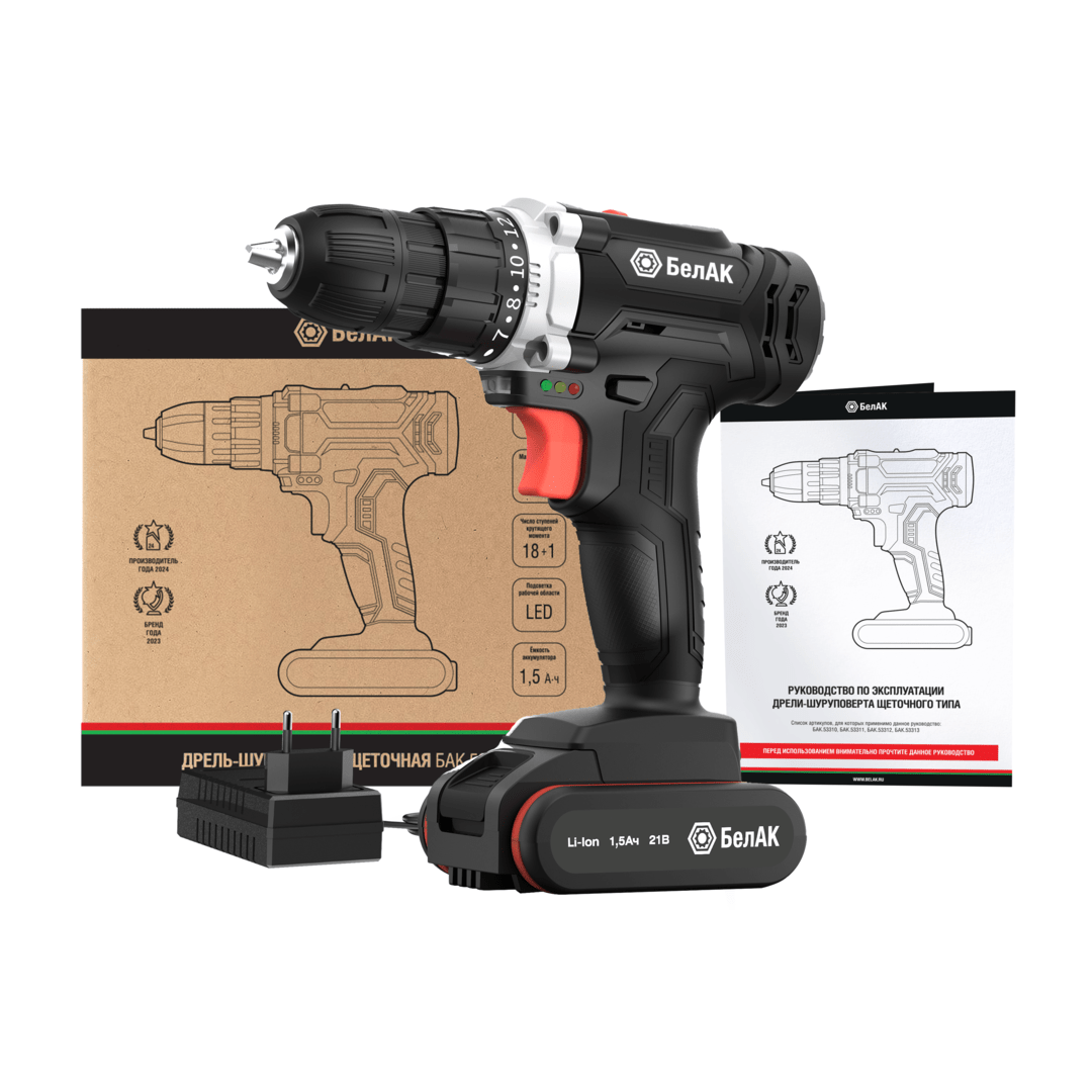Дрель-шуруповерт щеточная 18V, 40Hm, 1 АКБ БелАК (в коробке) БАК.53310