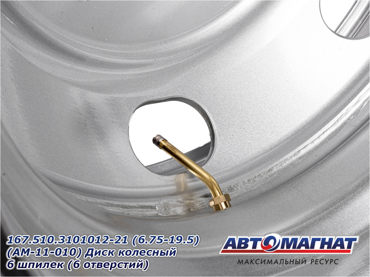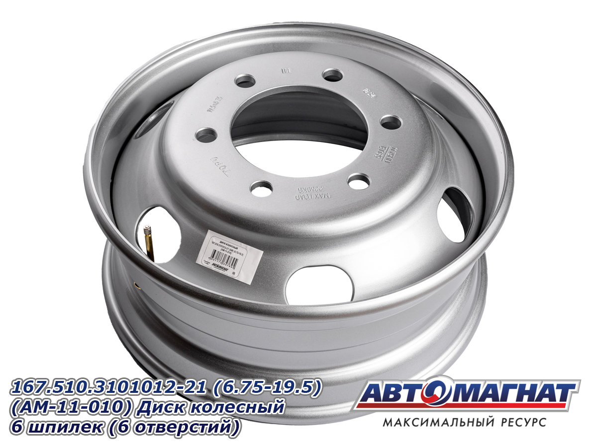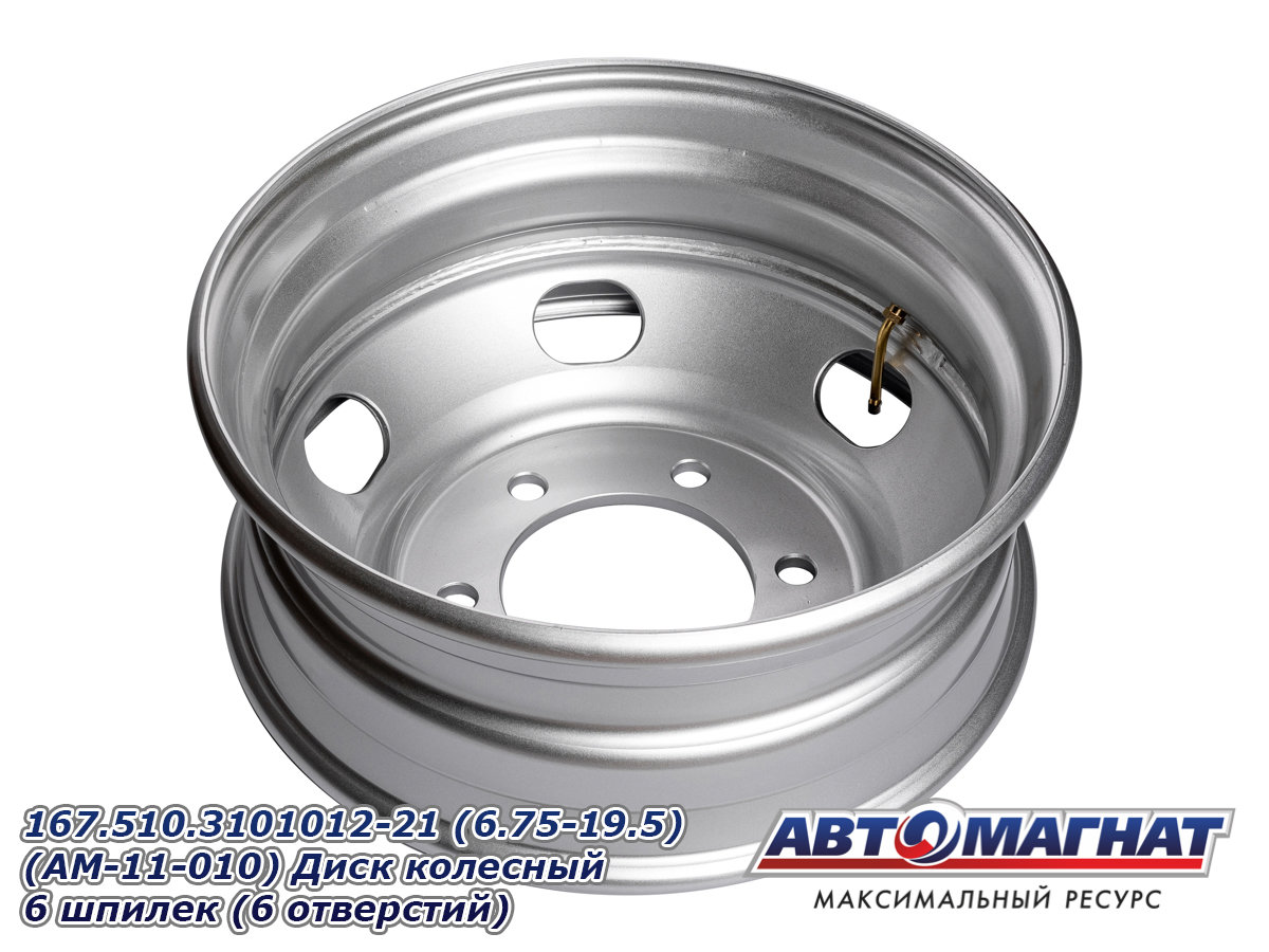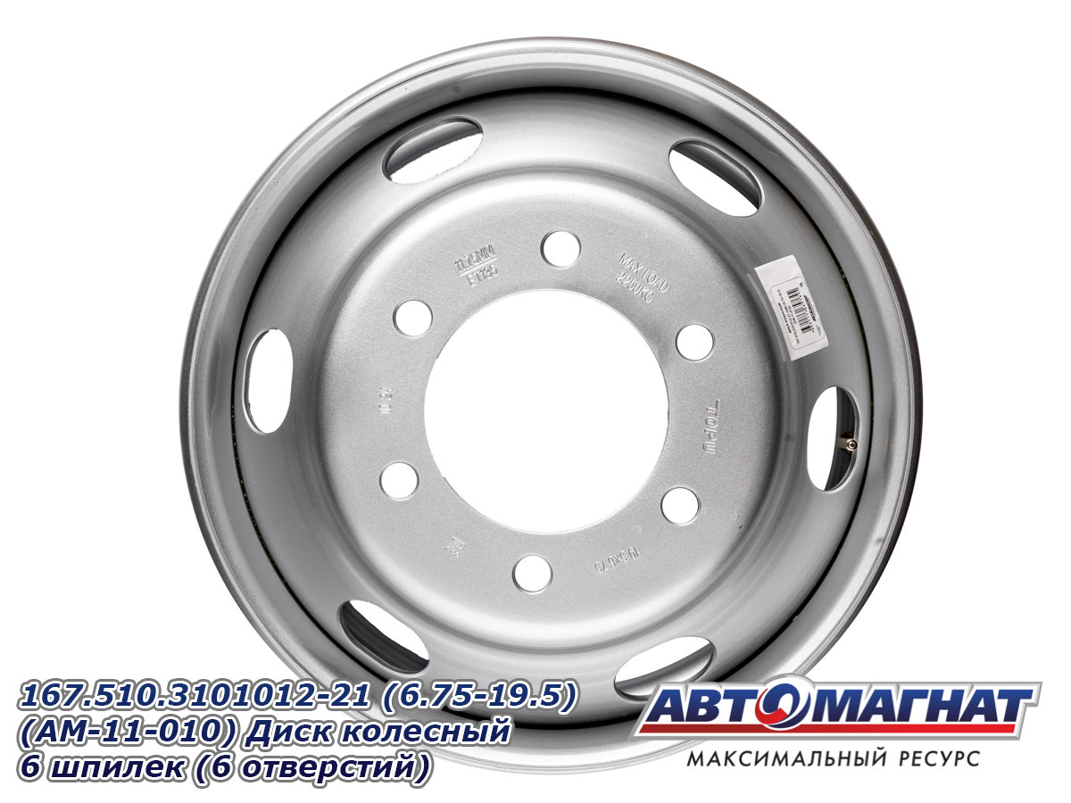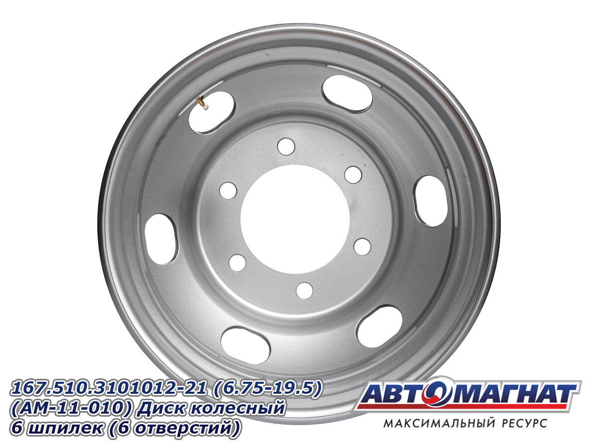 Диск колесный ГАЗон Next, ПАЗ-3204, 3237 HYUNDAI HD120, AeroTown (6.75-19.5) 6 шпилек (6,75х19,5 6 шпилек, PCD расстояний 222,25, ET135, DIA164) 167.510.3101012-21 (6.75-19.5) (AM-11-010) АВТОМАГНАТ