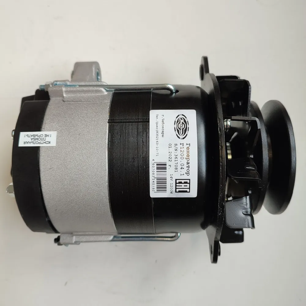 Генератор тракторный Г1200.04.1 ЭЛЕКТРОМ 14В 85А 1200Вт со встроенным выпрямительным блоком и регулятором напряжения предназначен для использования в качестве источника тока в системе электрооборудования.