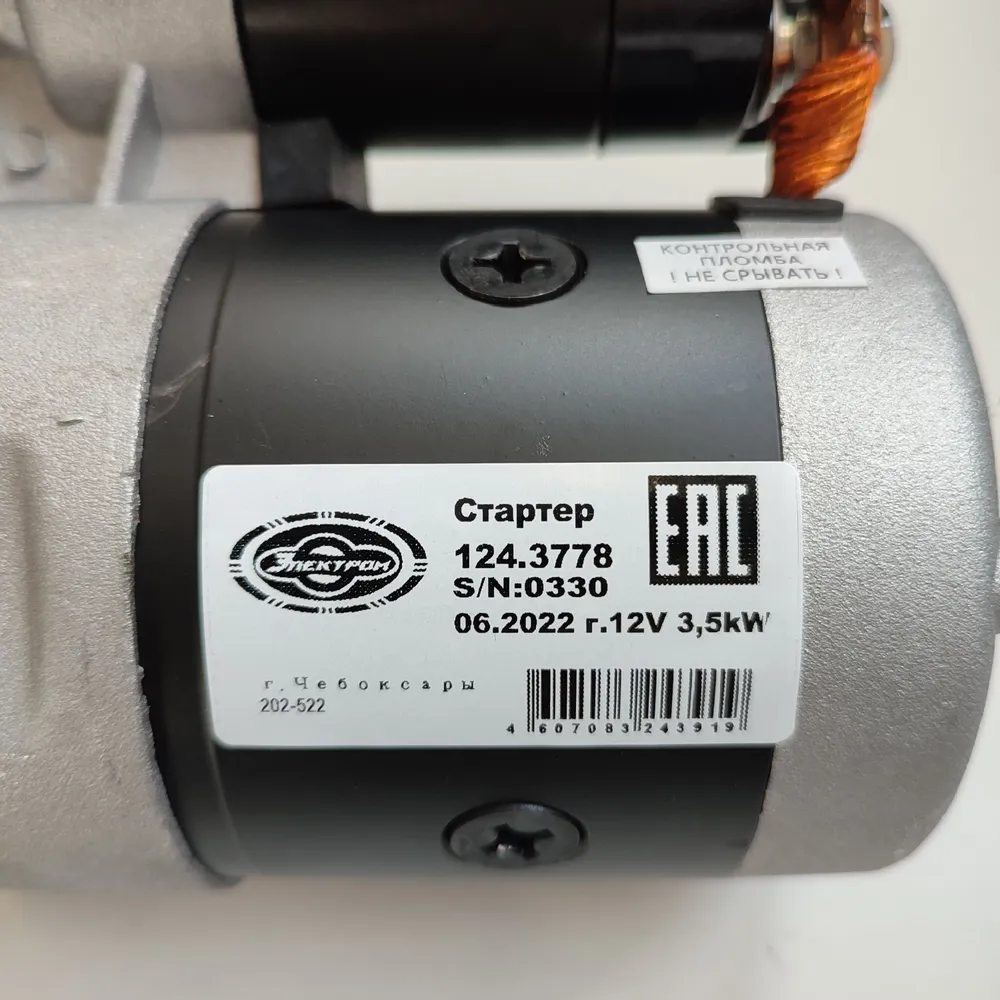 Стартер 124.3778 (аналог 9142780 Магнетон) МТЗ, ВТЗ, ГАЗ, ПАЗ 12В 3,5 кВт ("Электром", г. Чебоксары) (аналог AZJ 3124)