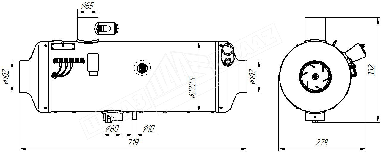 ОВ 65-0010-Г Отопительная установка дизель с верхним выхлопом 24 В ШААЗ